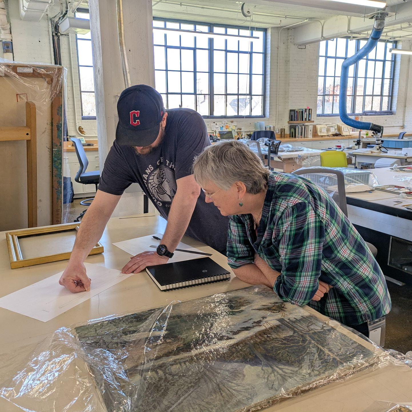 ICA became the model used by the National Endowment for the Arts when it incentivized a network of similar centers across the United States in 1971. As federal funding priorities shifted, the regional network failed to fully materialize and now ICA is one of only five nonprofit regional conservation centers remaining. Originally located on the campus of Oberlin College, in 2003 ICA staff packed up the lab and moved to the historic Vitrolite Building in Cleveland’s Hingetown neighborhood. Twenty years later, ICA moved to its current home in the Pivot Center for Art, Dance, and Expression in Cleveland’s vibrant Clark-Fulton neighborhood to join a community of arts and social service organizations. Come visit!